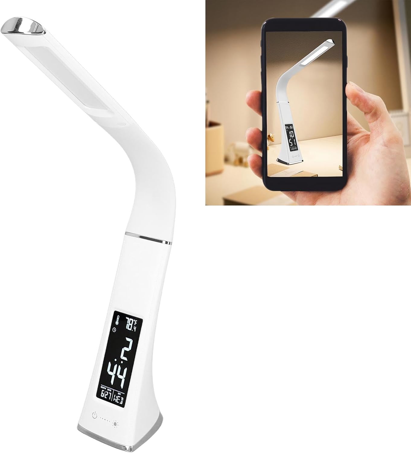 This LED desk lamp with clock and environment display is suitable for everyday use or as a practical gift for students, home offices, or workspaces.